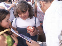 Lá para o meio da tarde recebemos a visita do escritor António Mota. Quando chegou , o escritor juntou os alunos todos no telheiro e lá falou sobre a importância dos livros e quanto tempo demoram a fazer. Depois da explicação do escritor ele deu autografos nos livros que lhe comprámos.